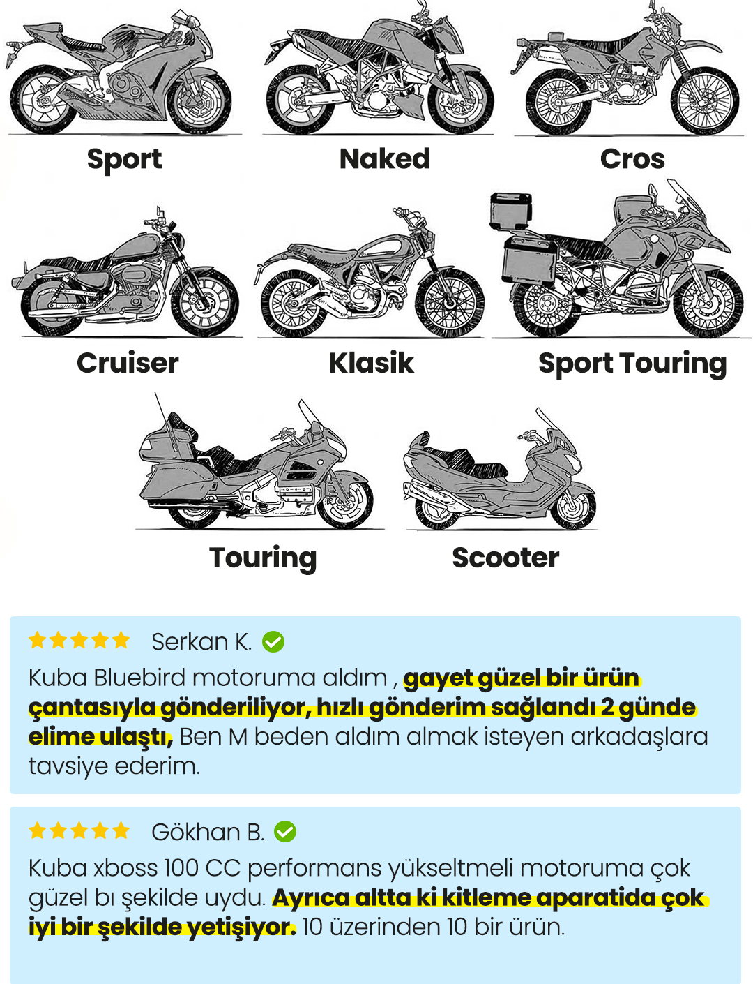 • Motosikletiniz için en uygun brandayı gönderebilmemiz için